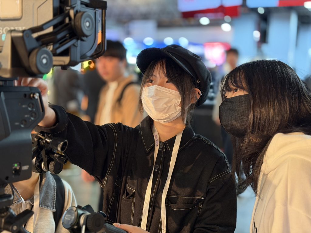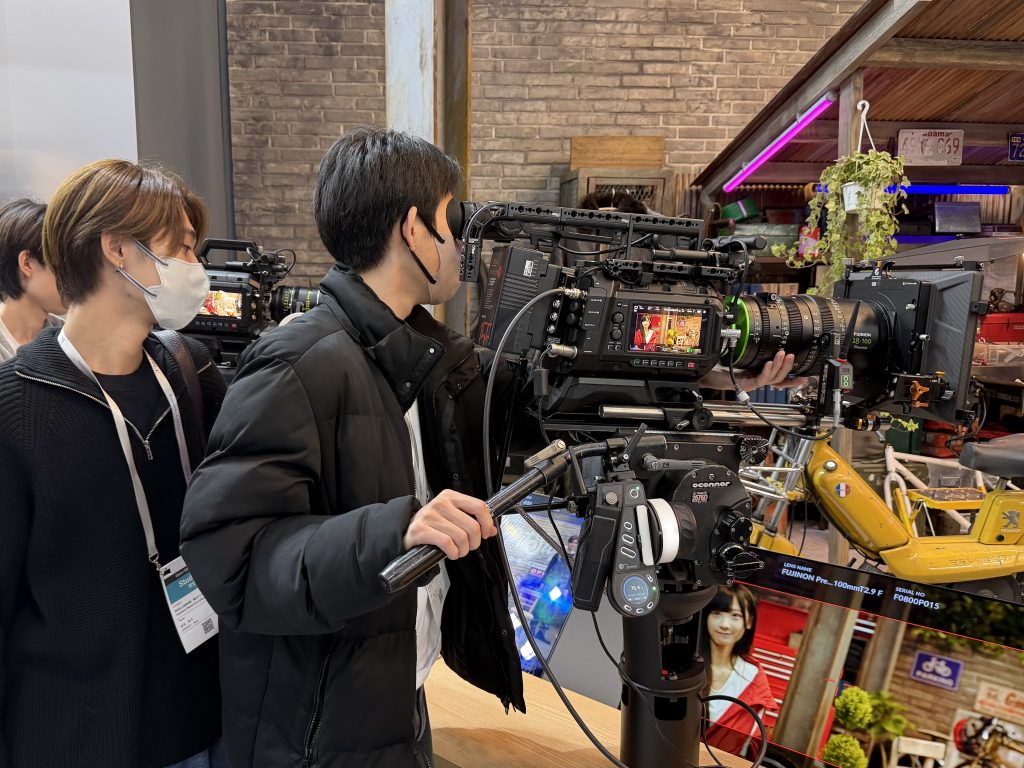 様々な種類のカメラ、スタジオ機材、オーディオ機材、クレーンやドローン、VRやAR、AIやインタラクティブなコンテンツなど、いつか自分が使うかもしれない最新の機材を、楽しそうに体験していました。
